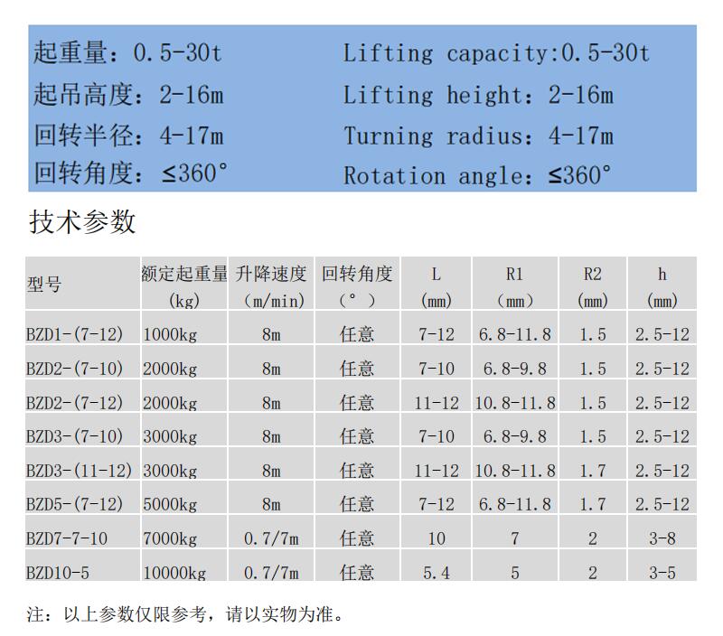 重型旋臂起重機是定柱式旋臂起重機的延伸產(chǎn)品,該機采用了回轉支承與變截面臂結構,起重高達2-16米,回轉半徑達4-17米。在操作方式上, 用戶可選擇手電門操作或無線遙控。本機適用于冶金, 鐵路、碼頭及機械制造等行業(yè)的物料吊運作業(yè)。許多場合下可替代橋式起重機和龍門吊作業(yè),投資少、效益高,該產(chǎn)品投放市場后頗得用戶好評。